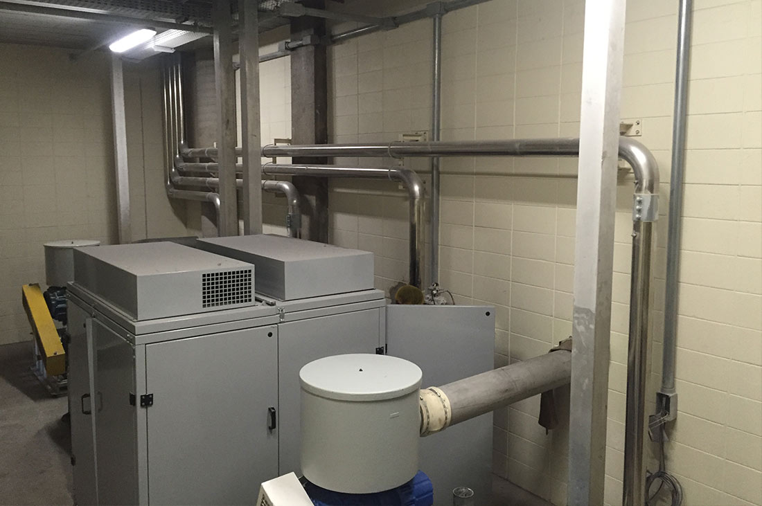 Novo sistema de manuseio de farinhas através de silo flexível de 60m³ equipado com células de carga. Transporte pneumático de 3ton/h para alimentação de linhas de produção.