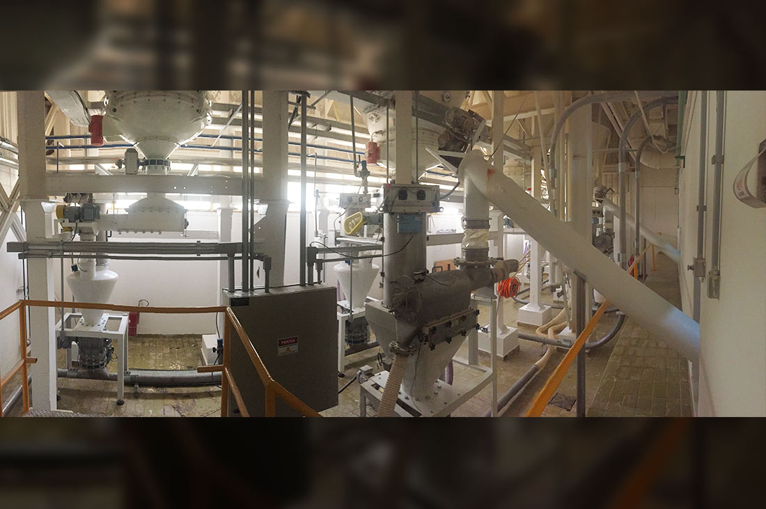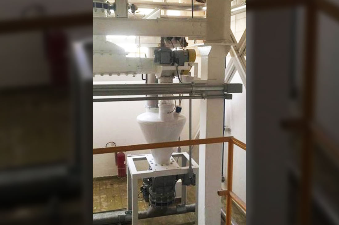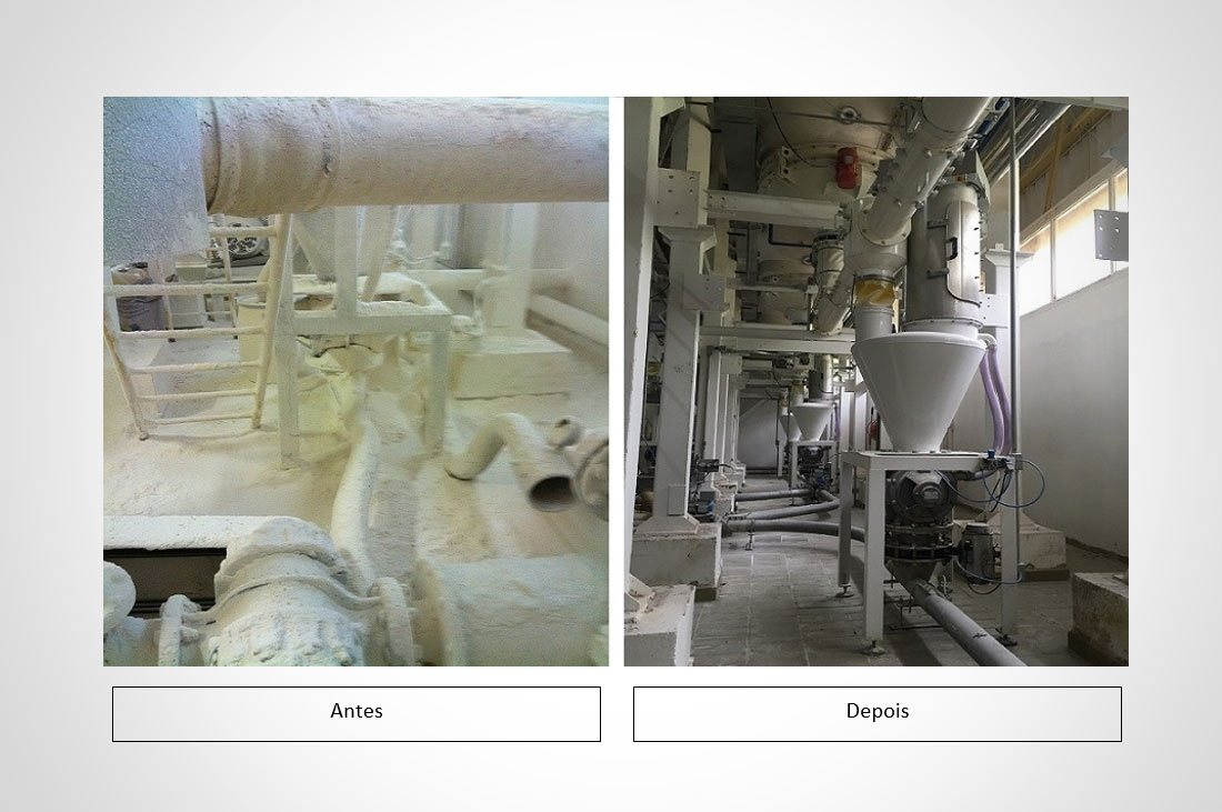 Revitalização completa de sistema de manuseio automático de farinhas com o aproveitamento de silos existentes, sendo 4 silos internos de 100m³ cada mais 2 externos de 120m³ cada.